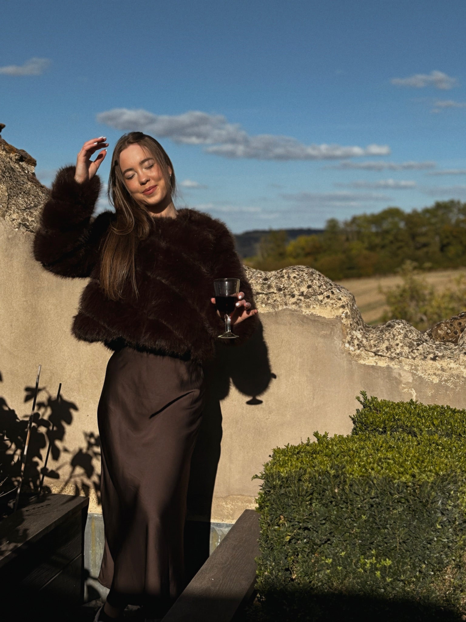 Bias-cut skirt made of viscose satin in chocolate brown color. It features an elastic waistband that perfectly adapts to your figure.